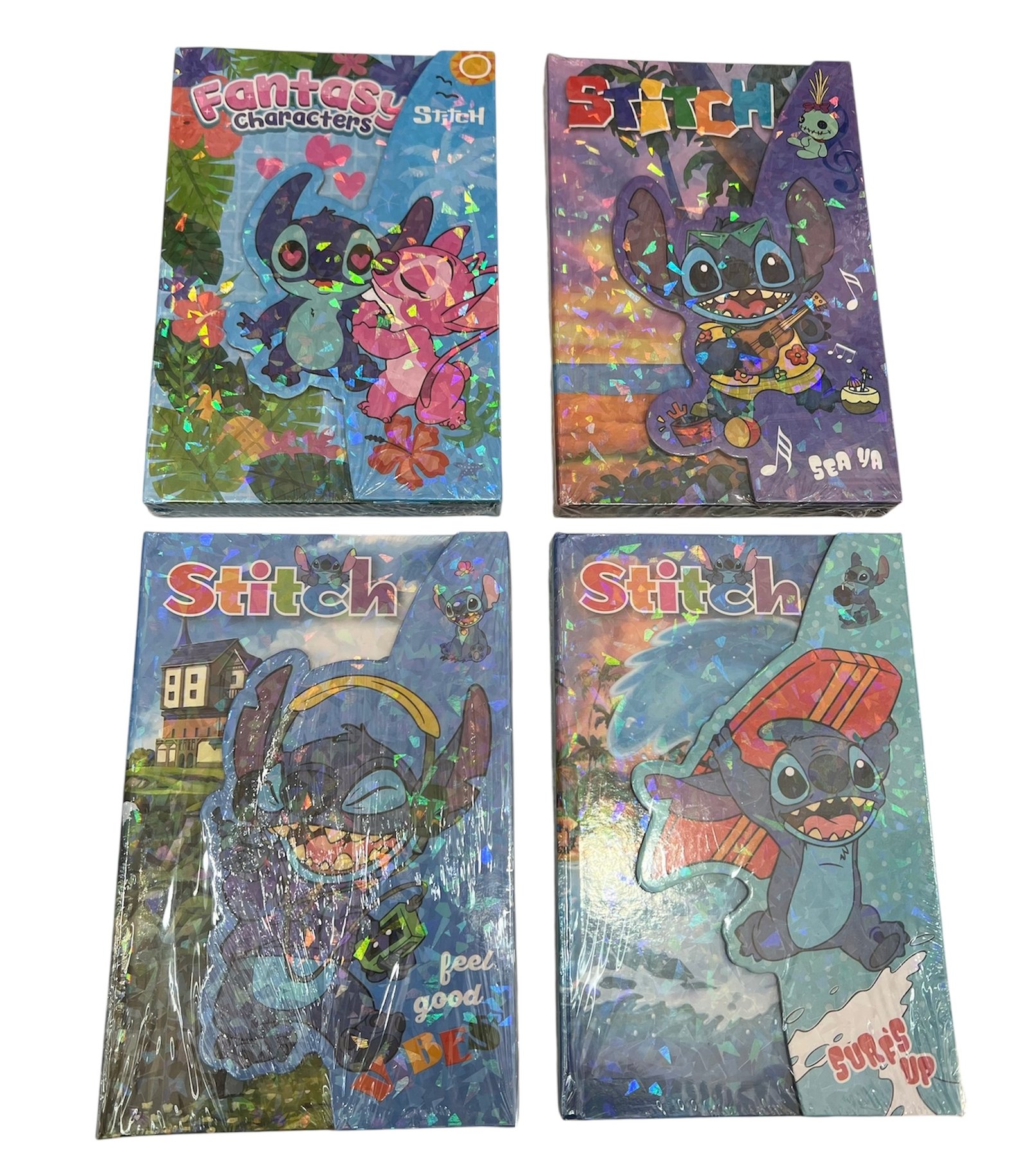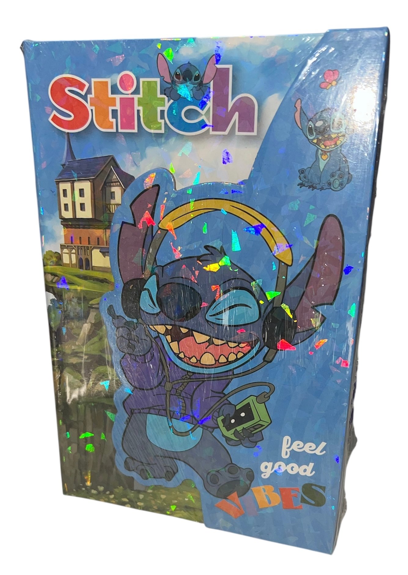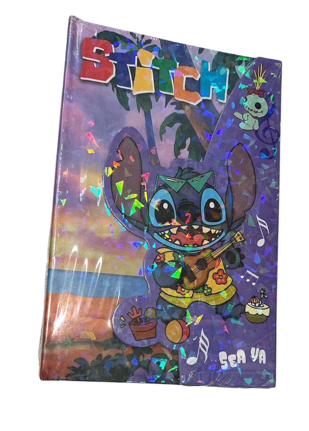 AGENDA STITCH TAPA DURA DIBUJO HOLOGRAMA HOJAS CON DISENOS.